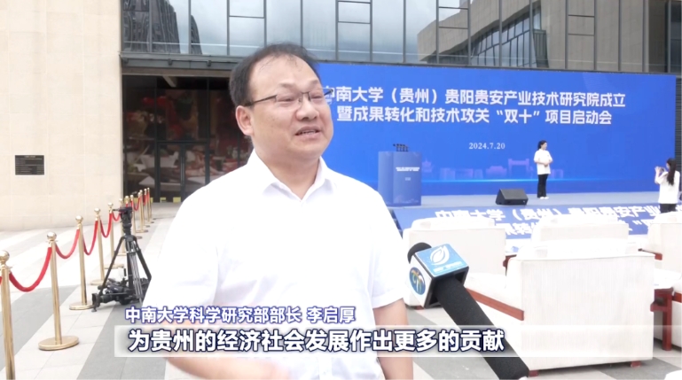中南大學科學研究部部長 李啟厚:這個研究院是中南大學服務貴州省經濟事業和產業發展的一個重大窗口,聚集中南大學的學科優勢、學科人才,定向地、精準地開展科技成果轉化、科技攻關相關的服務,為貴州的經濟社會發展作出更多的貢獻。