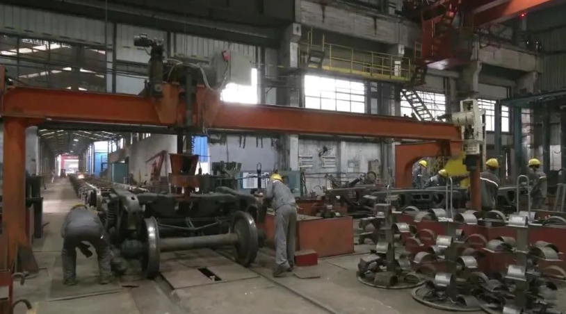 一組組貨車輪被自動送入熒光磁粉探傷機里“體檢”,機械臂有條不紊地工作,生產熱情持續高漲,以每8分鐘一輛車的生產節拍奏響了中車貴陽“趕工曲”。貴陽綜保區的中車貴陽車輛有限公司作為西南地區唯一的鐵路貨車修理基地,也是全國最大的貨車修理工廠之一,2023年的生產產值和產量均創下了歷史新高。