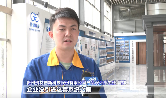 貴州貴材創(chuàng)新科技股份有限公司產(chǎn)品設(shè)計(jì)部主任 曾祥:我們沒引進(jìn)這套系統(tǒng)之前,生產(chǎn)系統(tǒng)比較混亂,投入的人力物力也比較大,并且給客戶交貨也比較晚,特別耽誤時(shí)間周期,當(dāng)企業(yè)引進(jìn)了這套系統(tǒng)之后,生產(chǎn)效率得到很大的提高,給客戶交貨的時(shí)間也提升了很多,幫助企業(yè)從以前幾千萬元的產(chǎn)值提升到了7.5億元的年產(chǎn)值。